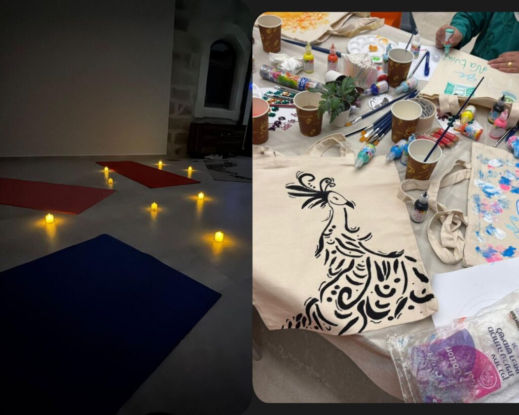 ثم عبرنا إلى الفن، حيث رسم كل مشارك رمزه الداخلي على كيس قماش، في تجربة حسية–روحية.
